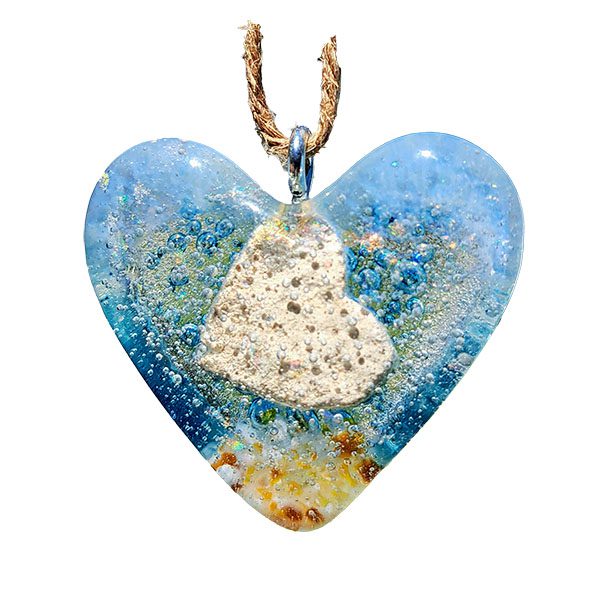 The Pet Passages Fillable Glass Memorial – Heart. This is a hand crafted glass memorial that can hold a small portion of your pet’s cremated remains. In the crafting of this art piece, we use dichroic glass which adds a shiny sparkle to each piece. Within the main heart you can see a small heart chamber that you can fill with a portion of your pet’s ashes and/or fur. Unlike other glass memorials that require you to send your pet’s ahes out to be hand crafted, these are pre-made and self fillable. These pieces can be worn as a pendant or carry them on your person in a pocket or purse or add a ribbon to the bail and hang on a Christmas Tree or in a place where natural sunlight can illuminate them. So many options.